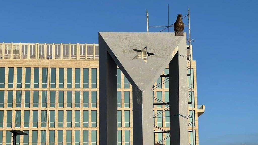 Colocan la escultura de una paloma en la Tribuna Antiimperialista de La Habana.