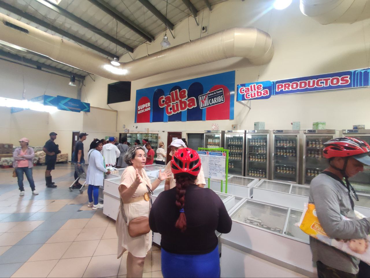 A las afueras del local, un custodio aclara a los despistados clientes que "esto ya no es en MLC", la moneda libremente convertible que va en caída libre y que en el mercado informal de divisas vale apenas 195 pesos frente a los 405 que alcanza el dólar. Pero la frase del empleado no es necesaria. Basta asomarse al interior y ver los estantes cargados con golosinas, granos, salsas y legumbres envasadas para percatarse de que en Calle Cuba transita, con vía libre y sin freno, el fula. Incluso los consumidores que este lunes hacían fila en el área de la carnicería son "gente con acceso a divisa", al decir con ironía de un curioso que solo entró "para mirar el futuro".